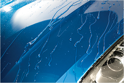 ガラス系被膜に高レベルの撥水性能を付与させるこせることで、しっかり雨を弾くとともに、酸性雨や水アカからしっかりボディを守ります。